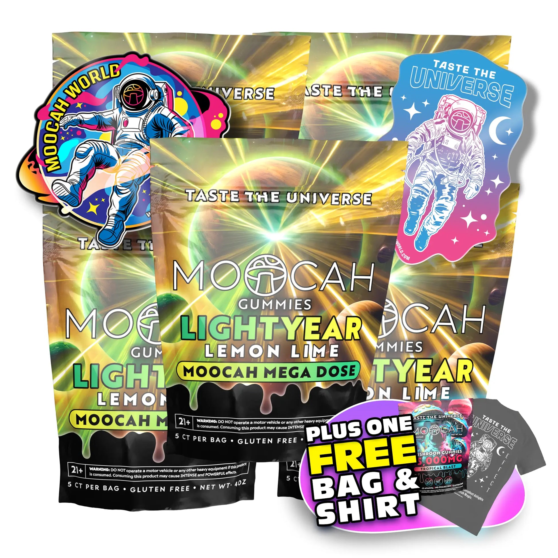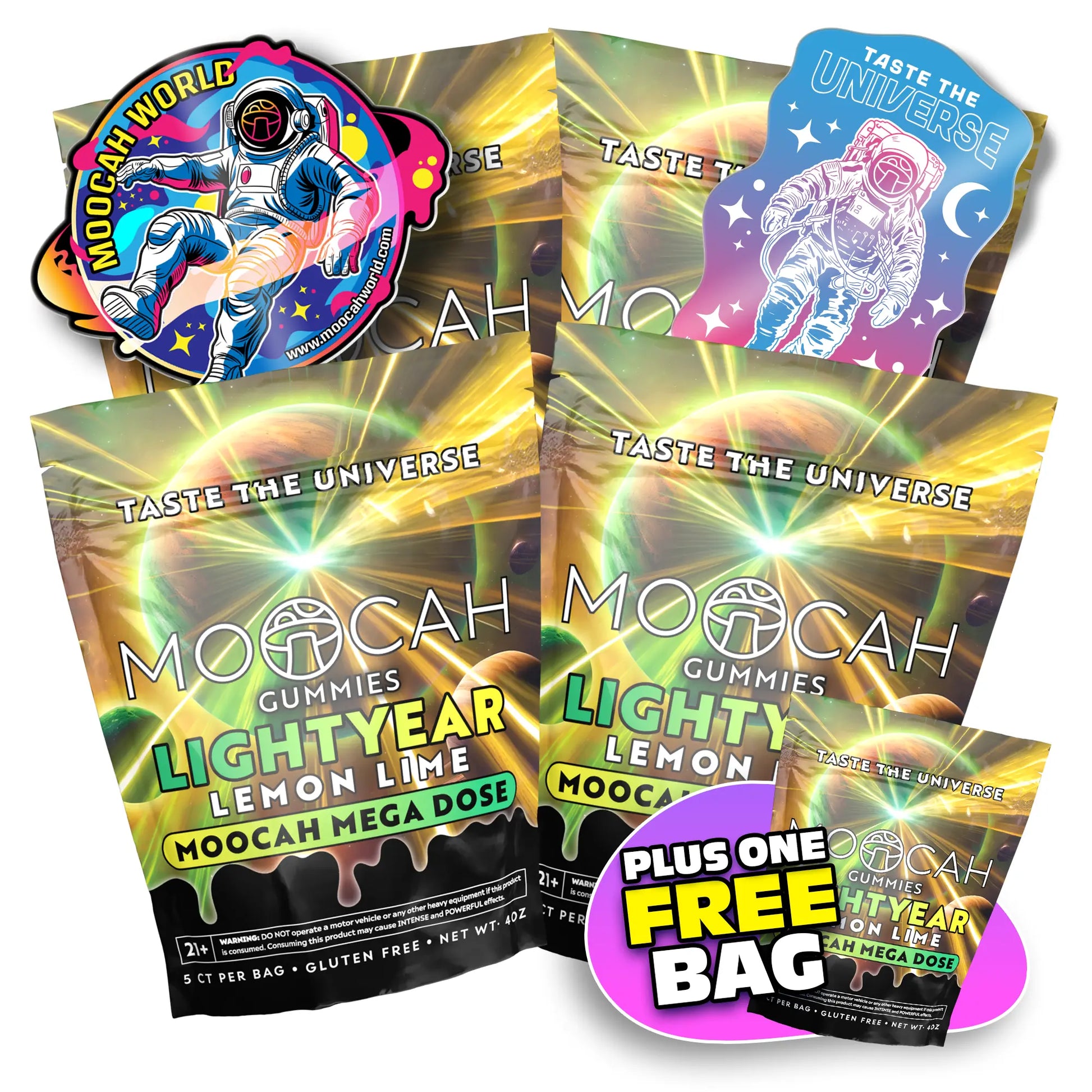 5 or more of our gummies is the highest level we recommend taking this experience to. Strongest visuals, tons of energy, and full-blown belly laughs. This is territory made for those trying to see the other side of the universe.