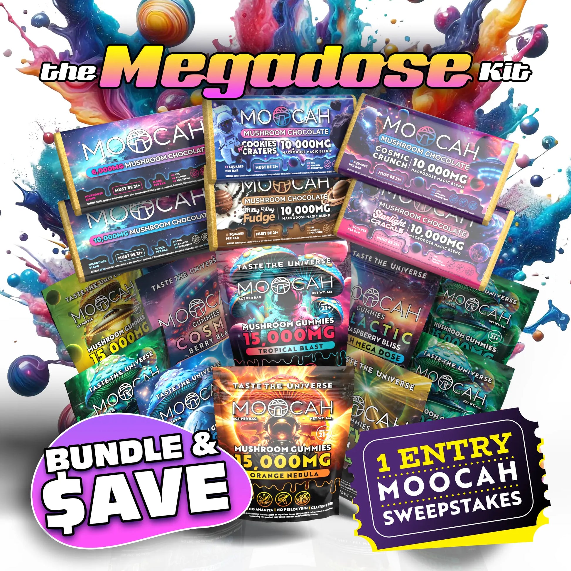 Moocah Mega Dose Gummies contain a proprietary blend of newly discovered, all natural tryptamines & erinacines that are gaining recognition within the scientific community for their potential theraputic effects by offering powerful psychadelic experiences with less undesirable side-effects like nausia and heavy body load.